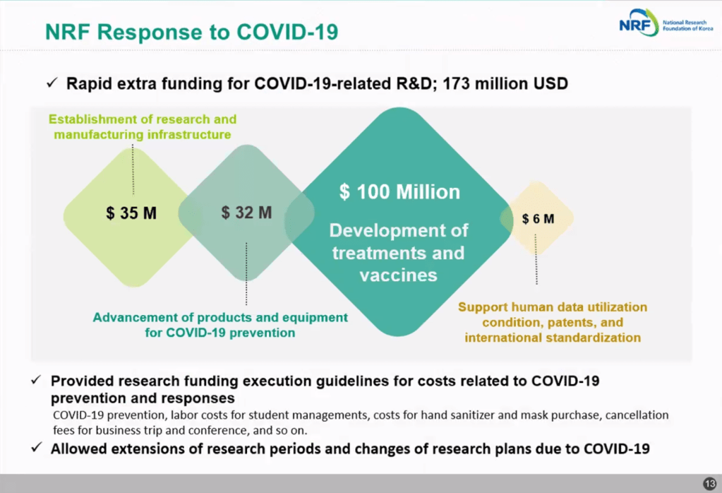 - 本文中的簡報圖檔來源,取自 Jung-hye Roe 教授的演講簡報:Roe, J.-h. (2021). The role and responsibility of National Research Foundation of Korea in COVID-19 Era [Conference presentation]. The 4th 2021 Seoul Asia Pacific Research Integrity Network Conference.