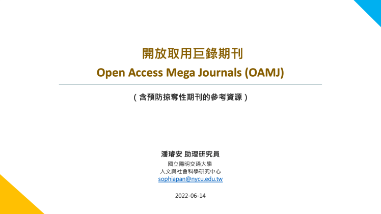建議引用格式:潘璿安(2022年6月14日)。簡介開放取用巨錄期刊 Open Access Mega Journals〔簡報〕。 https://sophia-pan.com/2022/06/16/lecture-nycu2022-mega-journal。